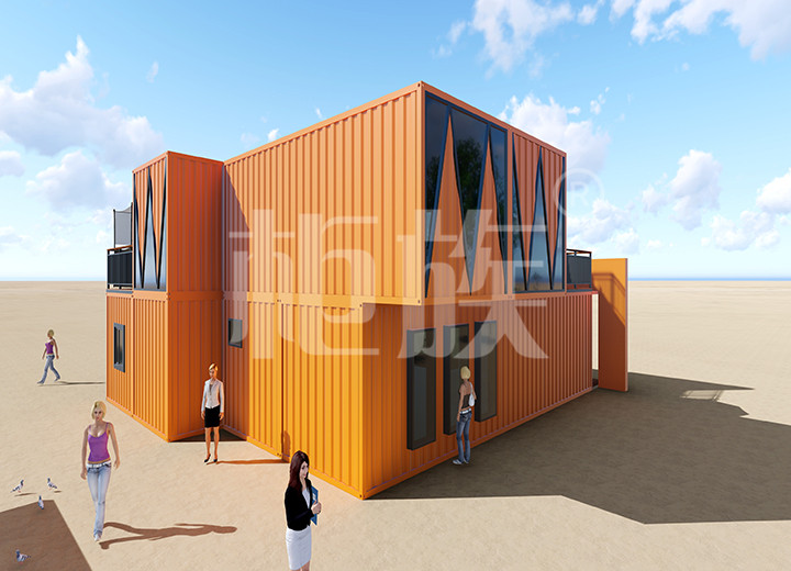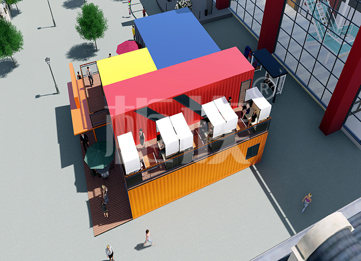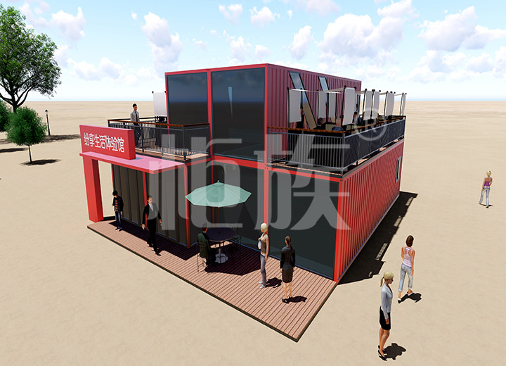 彩色外觀引人注目,集裝箱的隨意組合功能可以根據(jù)需要延展空間使用面積。一層可供展品擺放,二層陽(yáng)臺(tái)可供休息娛樂(lè)。